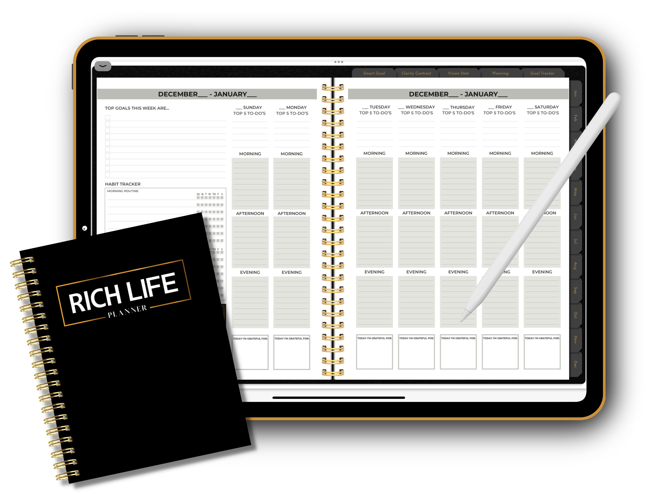 Get these powerful digital tools for FREE to help you amplify achieving your goals. Included with the purchase of a Rich Life Planner (hardcover version).